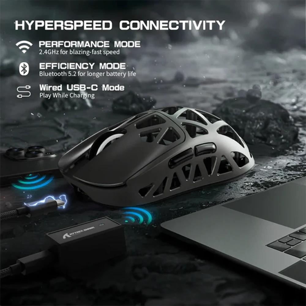 The ATTACK SHARK R2 Magnesium Alloy PAW3950 Gaming Mouse Black uses a strong yet lightweight magnesium alloy shell. It feels solid in hand but stays light enough for fast movements, helping reduce fatigue during long gaming sessions.