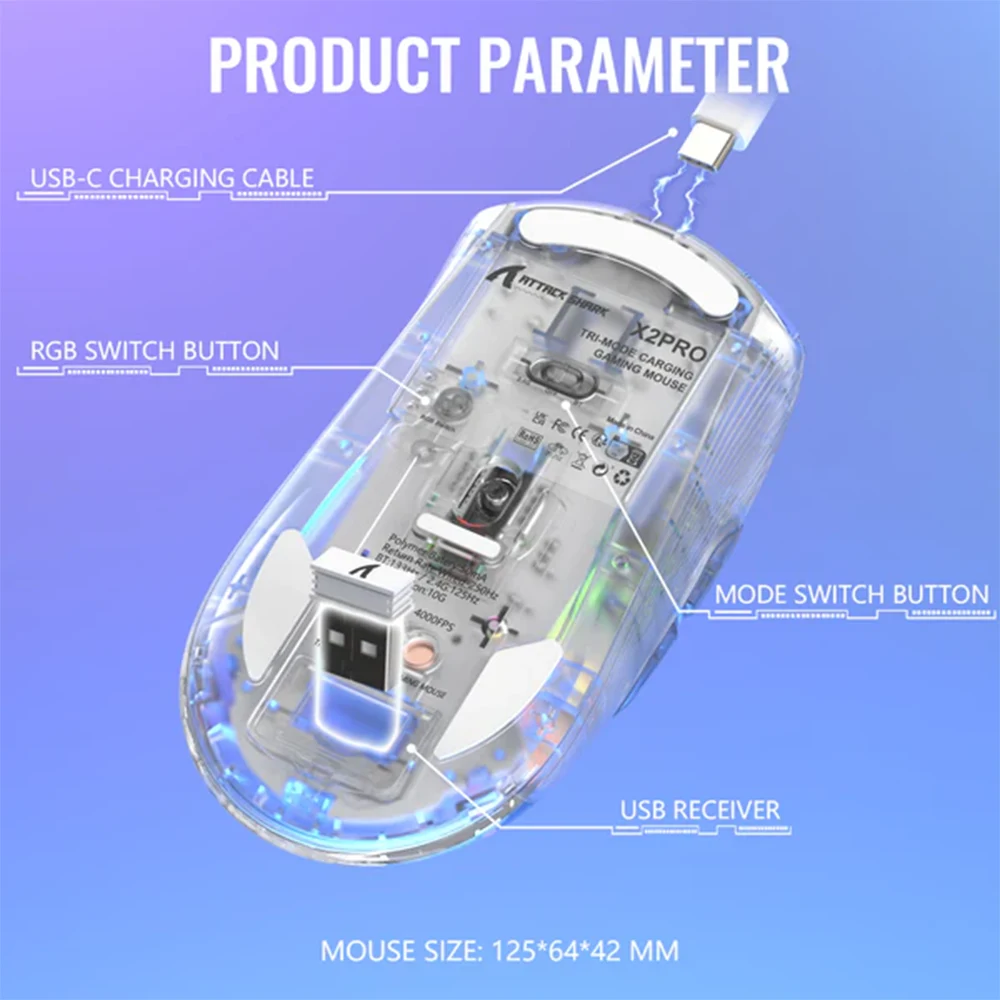 ATTACK SHARK X2PRO Wireless Gaming Mouse White Description & Specifications:
