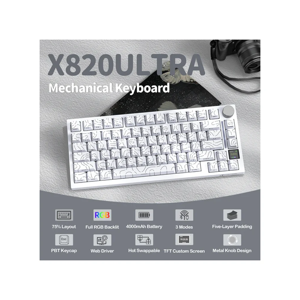 ATTACK SHARK X820Ultra Tri-mode Gasket Mechanical Keyboard White Contours Description & Specifications: