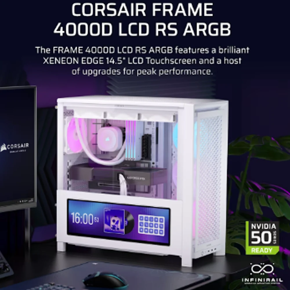 Corsair FRAME 4000D LCD RS ARGB Premium Mid-Tower PC Case White Description & Specification