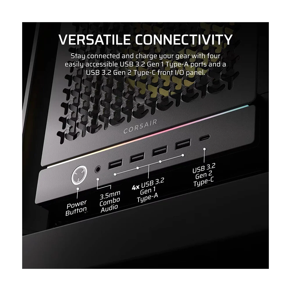 The Corsair FRAME 5000D RS ARGB is built with a high-airflow layout that keeps your system cool even during heavy workloads. Its open ventilation and optimized internal structure allow smooth airflow throughout the case. This ensures consistent performance for gaming and productivity rigs.