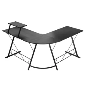 The L-shaped structure makes smart use of corner space while providing a wide working area. It offers enough room for monitors, keyboard, and accessories without feeling cramped. This layout works well for gaming setups and everyday desk use.