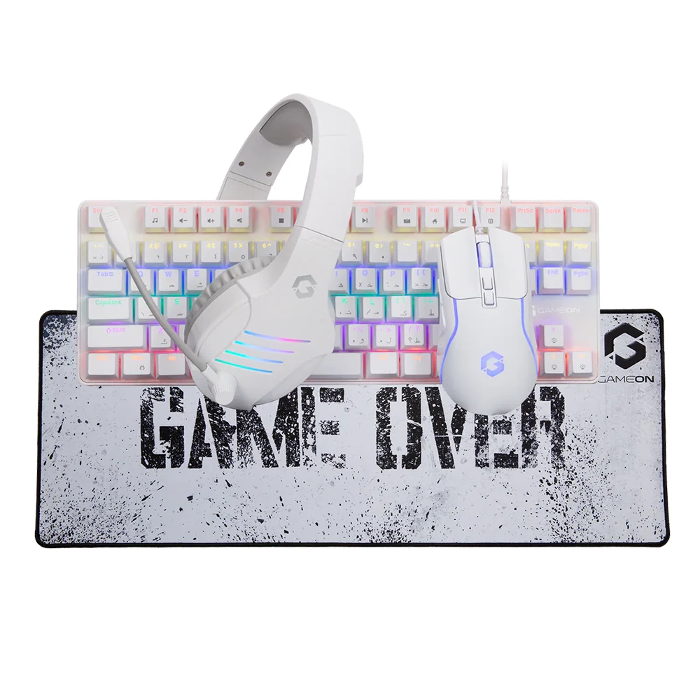 GAMEON VIPER XA All-In-One Artic Series Gaming Bundle includes a mechanical keyboard, headset, mouse, and mousepad in one package. It is made for users who want a matching setup without buying items separately. The Arctic theme gives a clean and modern desk look.