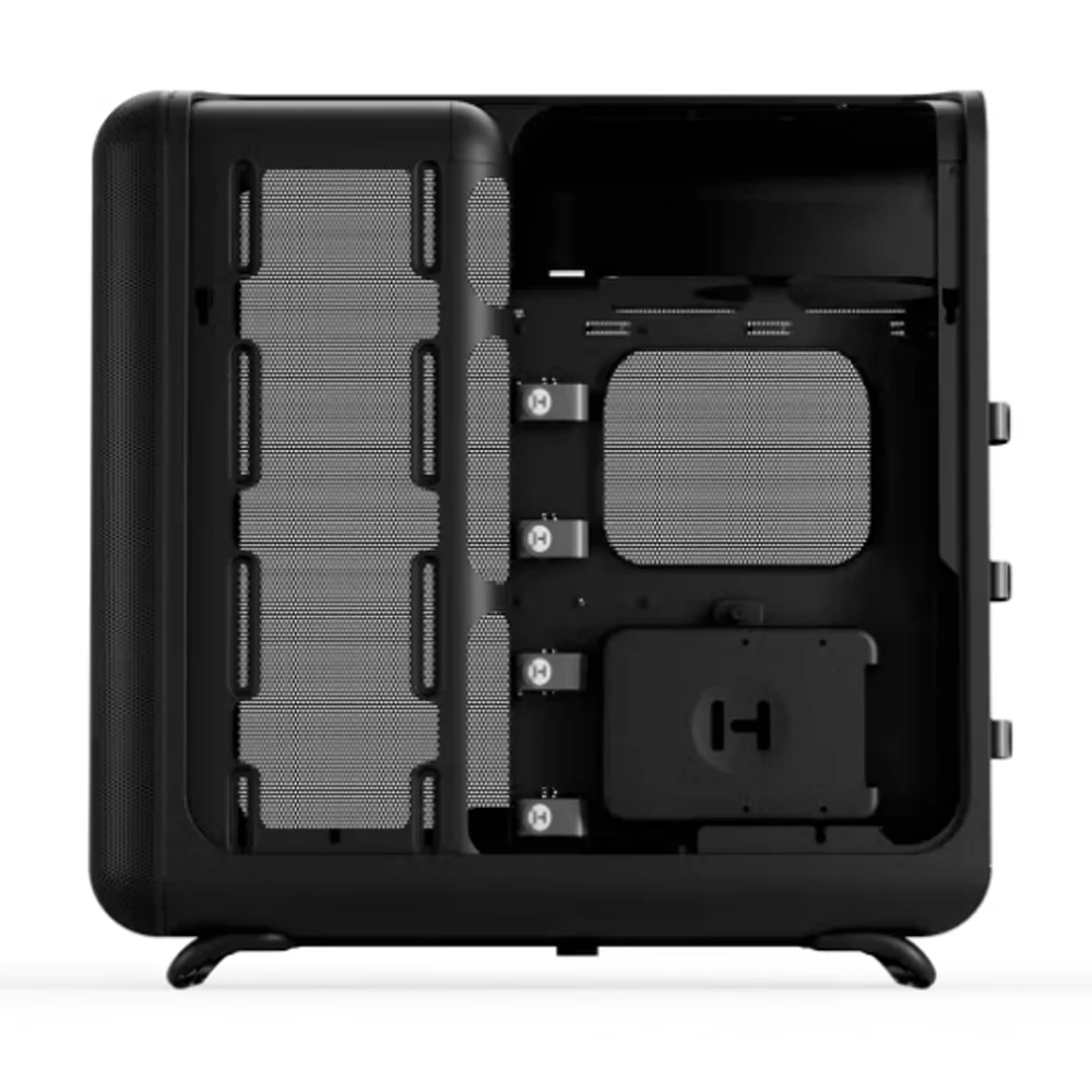 The HYTE X50 Modern Performance PC Case Pitch Black comes with a large 63-liter internal volume that gives your components plenty of breathing room. This design helps keep airflow smooth and cooling efficient even with high-end builds. It is a great option for users who want space without moving to a full-tower case.
