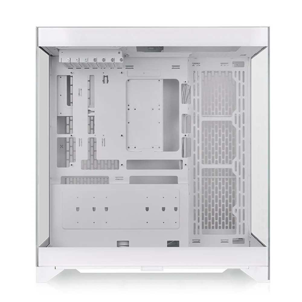 The Thermaltake CTE E550 TG Snow Mid Tower Chassis PC Case features a sleek snow white finish that gives any setup a modern and polished look. Its compact mid-tower layout ensures a balance between space efficiency and component compatibility.