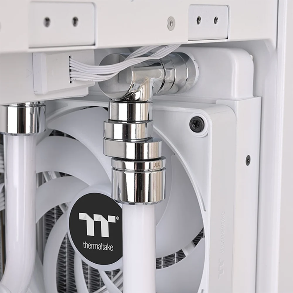 Thermaltake Pacific F-Pro Rotary Offset Chrome comes with standard G1/4” threads that fit most water-cooling components. It connects securely to blocks, radiators, and other fittings, providing a leak-free and reliable setup for both beginner and advanced builders.
