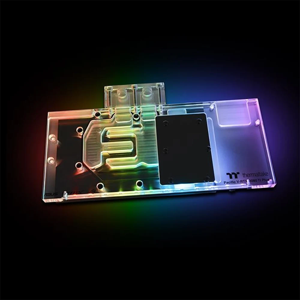 The Thermaltake Pacific V-RTX 2080Ti Plus is designed to provide complete coverage for ASUS ROG 2080Ti graphics cards. It efficiently cools the GPU, VRAM, and power components, maintaining stable temperatures even under heavy gaming or rendering loads.