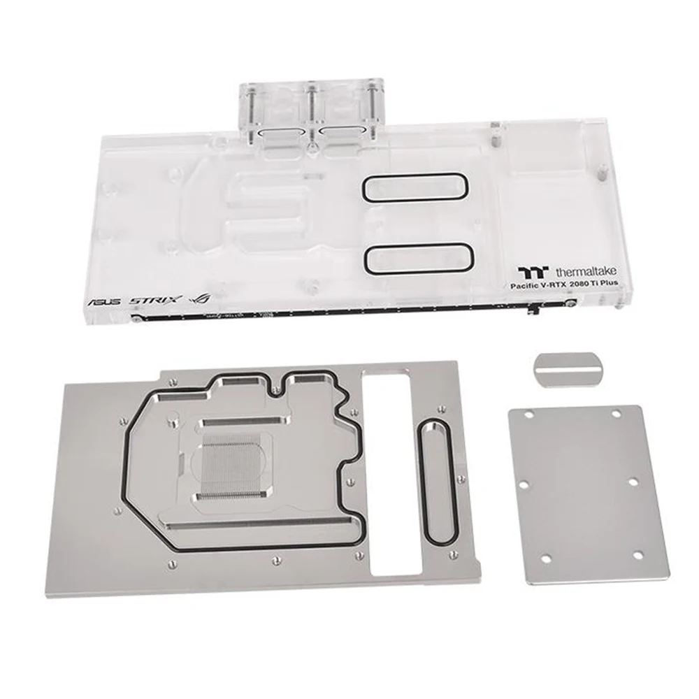 The Thermaltake Pacific V-RTX 2080Ti Plus includes pre-cut thermal pads and screws for a secure, hassle-free installation. It ensures a perfect fit for ASUS ROG 2080Ti cards and simplifies custom loop setup for both beginners and enthusiasts.
