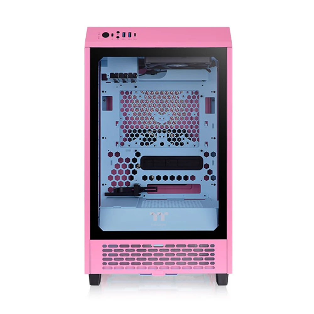 The Thermaltake The Tower 200 Bubble Pink Mini Chassis PC Case features a vertical design that saves desk space while keeping airflow efficient. This tower-style structure gives compact builds a bold look without compromising everyday usability.